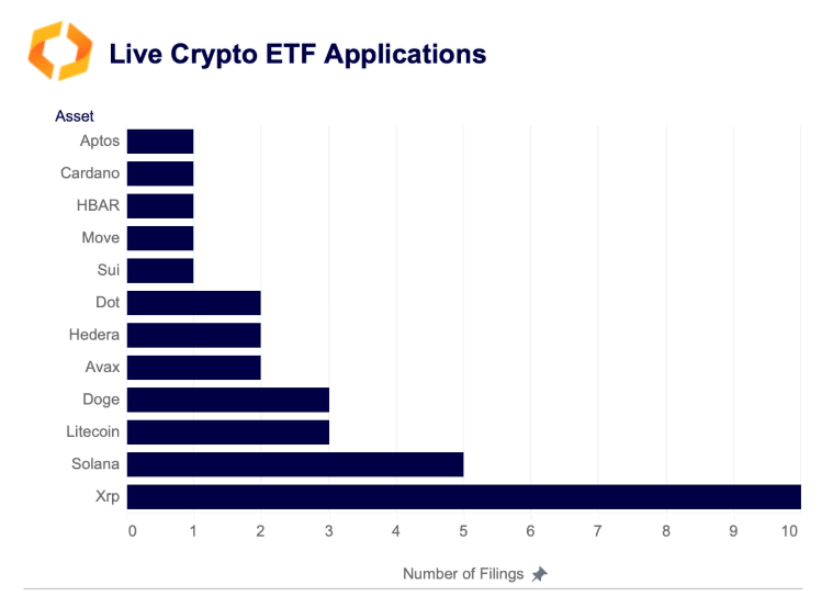 Kaiko verilerine göre, aktif ETF başvuruları arasında XRP 10 başvuruyla başı çekerken, onu beş başvuruyla Solana ETF’si, üçer başvuruyla Litecoin ve Dogecoin takip ediyor. Daha fazla başvuru, kısmi de olsa onay ihtimalinin yükseldiğini gösteriyor.
