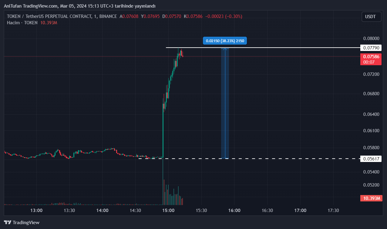 Çok kısa bir süre içerisinde %40’a yakın değer kazanmayı başaran TOKEN, halen zirve seviyelerde işlem görmeye devam ediyor.