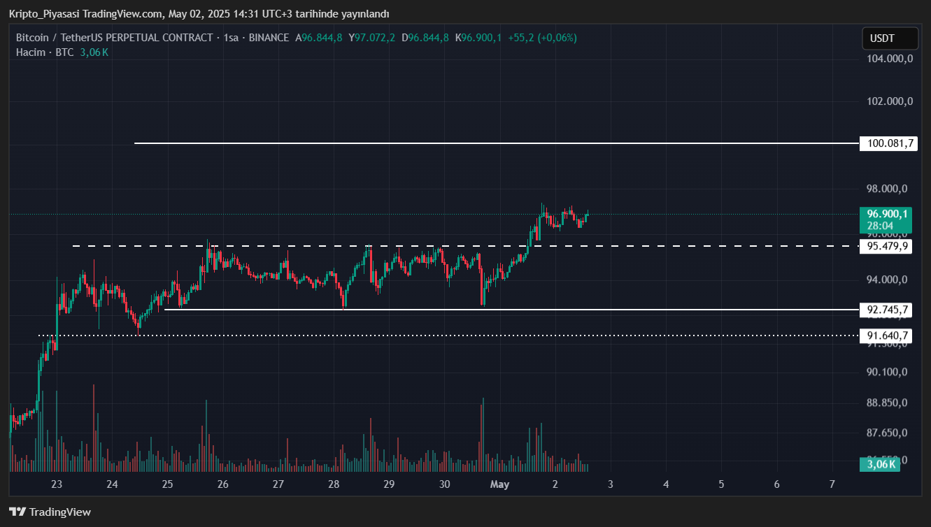 Lider kripto para birimi Bitcoin (BTC), kritik ABD verilerine 1 saat kalmışken an itibariyle 96.900 dolardan işlem görüyor. Kritik bir bölgede olan BTC, iyi bir verinin gelmesi halinde ani artışlar yaşayabilir.