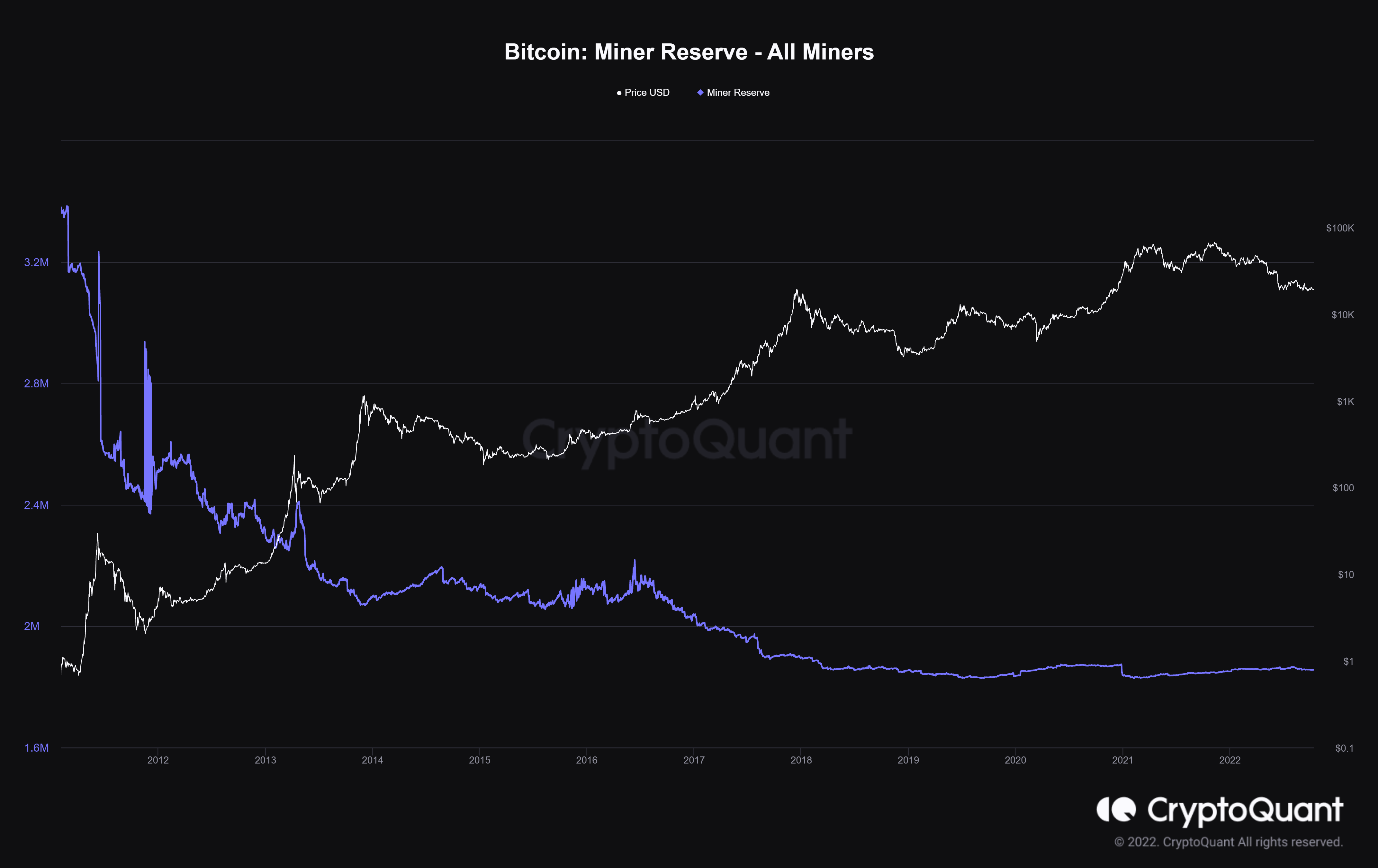 Başarılı bir veri sağlayıcısı olan CryptoQuant’ın aktardıklarına göre, Bitcoin madencilerinin BTC rezervleri düşmeye devam ediyor.