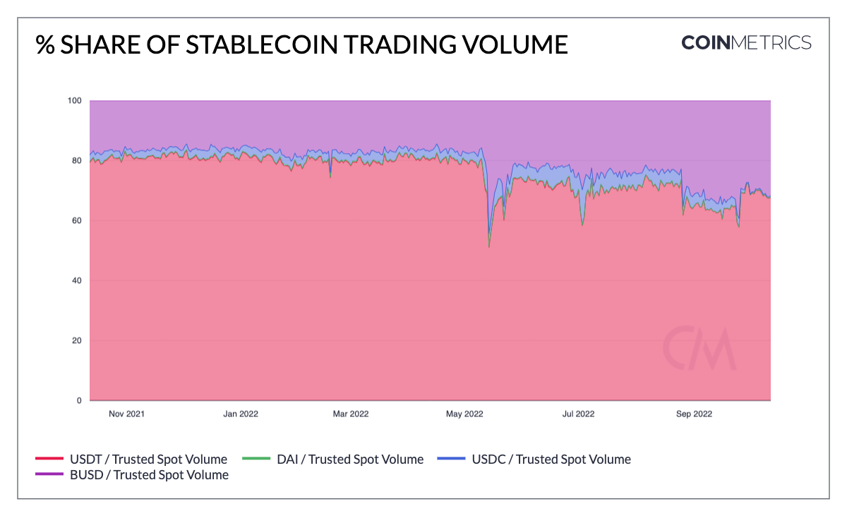 Son paylaşılanlara göre, USDT merkezi borsalardaki yapılan alım satım ticaret hacminin yüzde 70’ini oluşturuyor. Her ne kadar piyasa değeri anlamında Tether’in diğer stablecoinler ile arasında bu kadar büyük bir fark olmasa da, yapılan günlük ticaretler anlamında USDT halen yoğun bir şekilde tercih edilmekte.