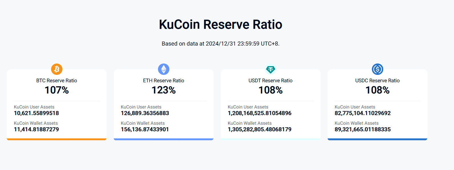 KuCoin’in lider kripto para birimi Bitcoin (BTC), lider altcoin Ethereum (ETH), USDC ve USDT rezervlerini yakından incelediğimizde, hepsinin %100’ün üzerinde olduğu ve herhangi bir kritik sorunun bulunmadığı görülüyor.