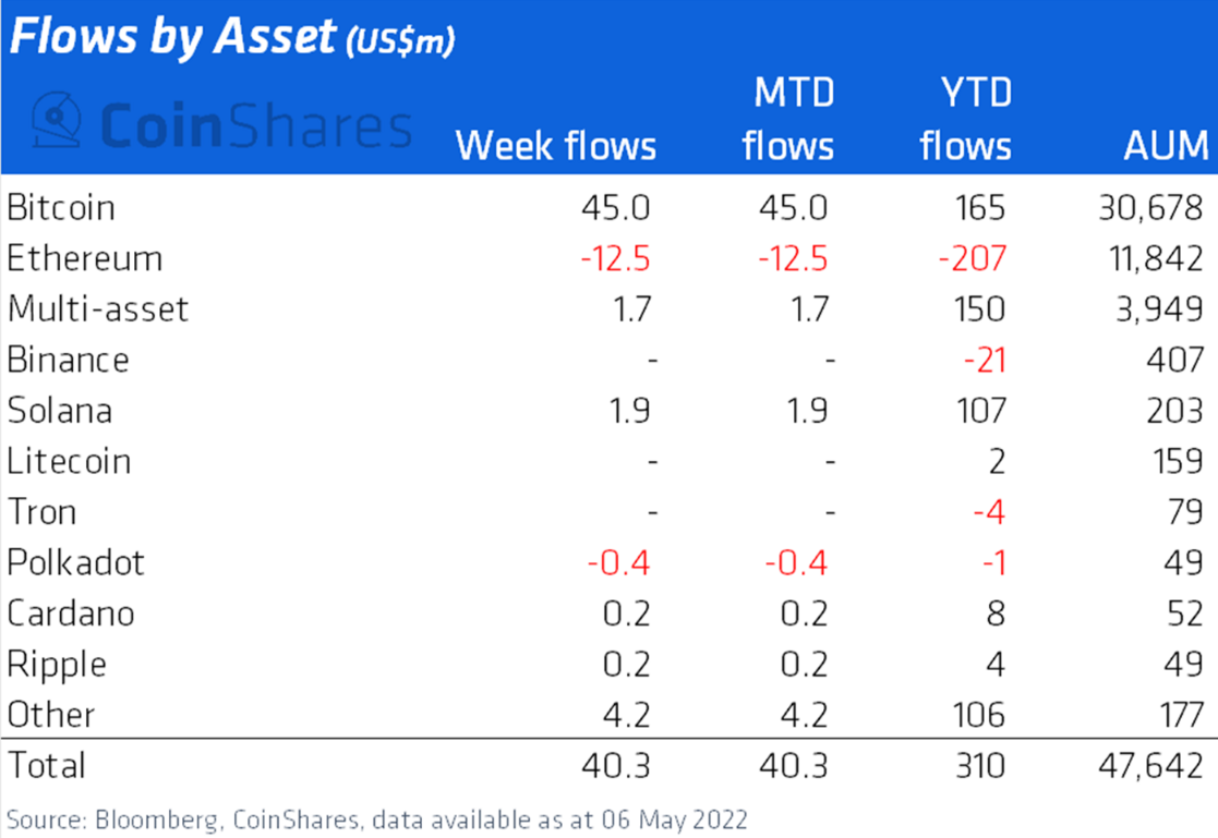 “Dijital Varlık Fonu Akışları Haftalık Raporunun” son verilerinde CoinShares, kurumların piyasa çöküşüne rağmen kripto sektörüne 45 milyon dolar yatırım yaptığını tespit etti.