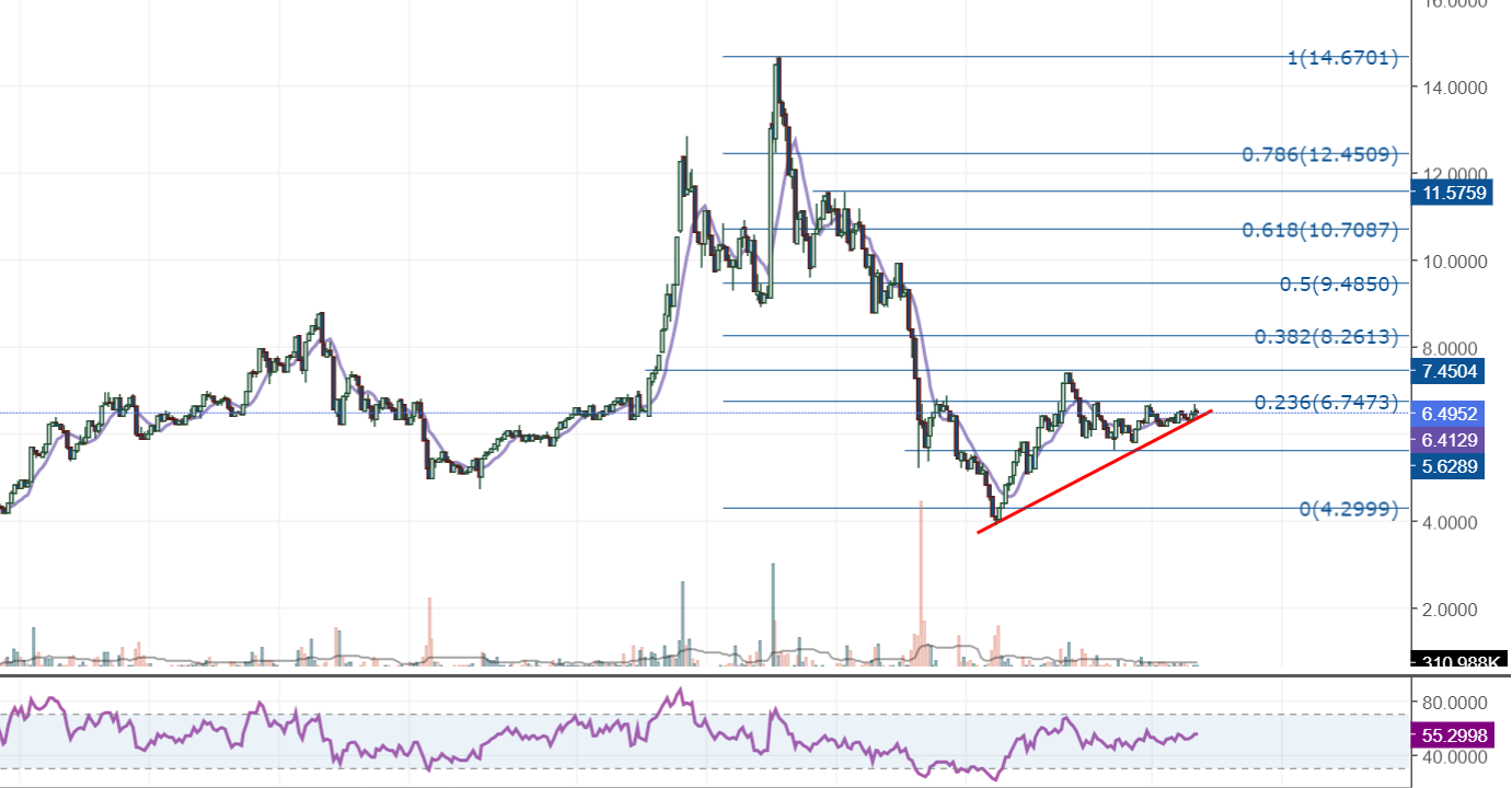 6,74 baskısından sıyrılamaz ve 9 günlük hareketli ortalamayı aşağı yönlü kırarsa EOS/USD geri dönüş hareketi yapabilir ve ilk anda 5,62 desteği gündeme gelebilir.
