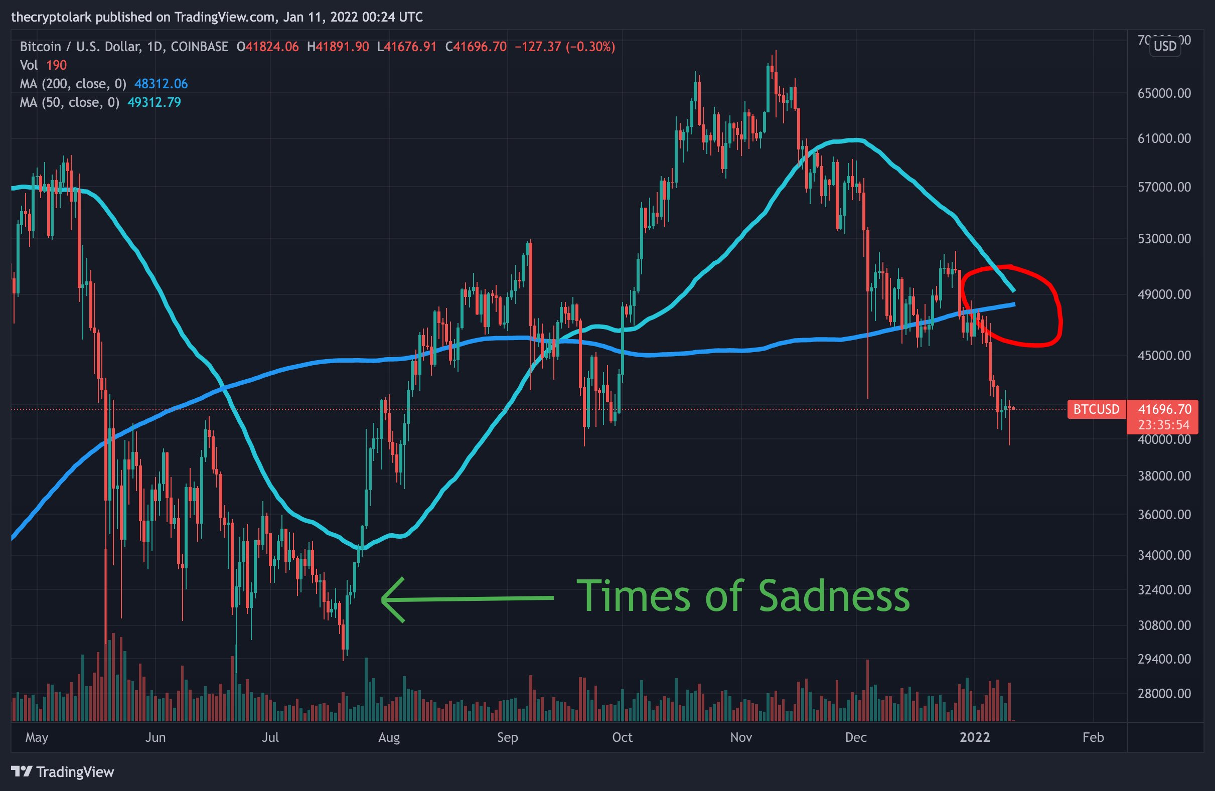 200 günlük hareketli ortalamanın 50 günlük hareketli ortalamayı aşağıdan kesmesine “death croos” deniyor. Bu olay gerçekleşmesinin ardından grafiklerde sert düşüşler görülebilmekte.
