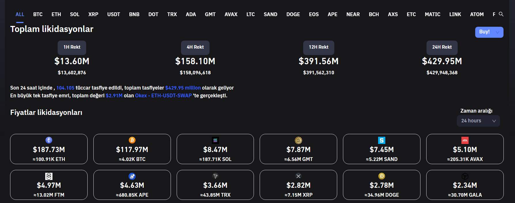 CoinGlass‘ın aktardığı verilere göre ise son 24 saat içerisinde 430 milyon dolarlık pozisyon likit edildi.