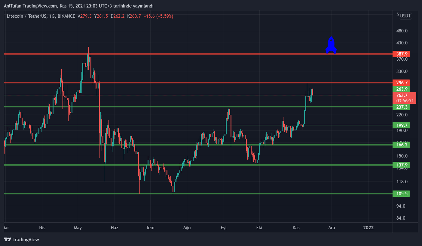Yapılan bu büyük anlaşmalar sayesinde değerine değer katan LTC, ATH seviyesi olan 414 dolar seviyesine yükselmeye çalışıyor. Böyle bir yükseliş gelmesiyle birlikte yatırımcılarına %50’den fazla kazanç getirebilecek olan LTC, 264 dolar desteğini aşağı yönlü kırması durumunda 237 dolar seviyelerine kadar bir gerileme yaşayabilir.