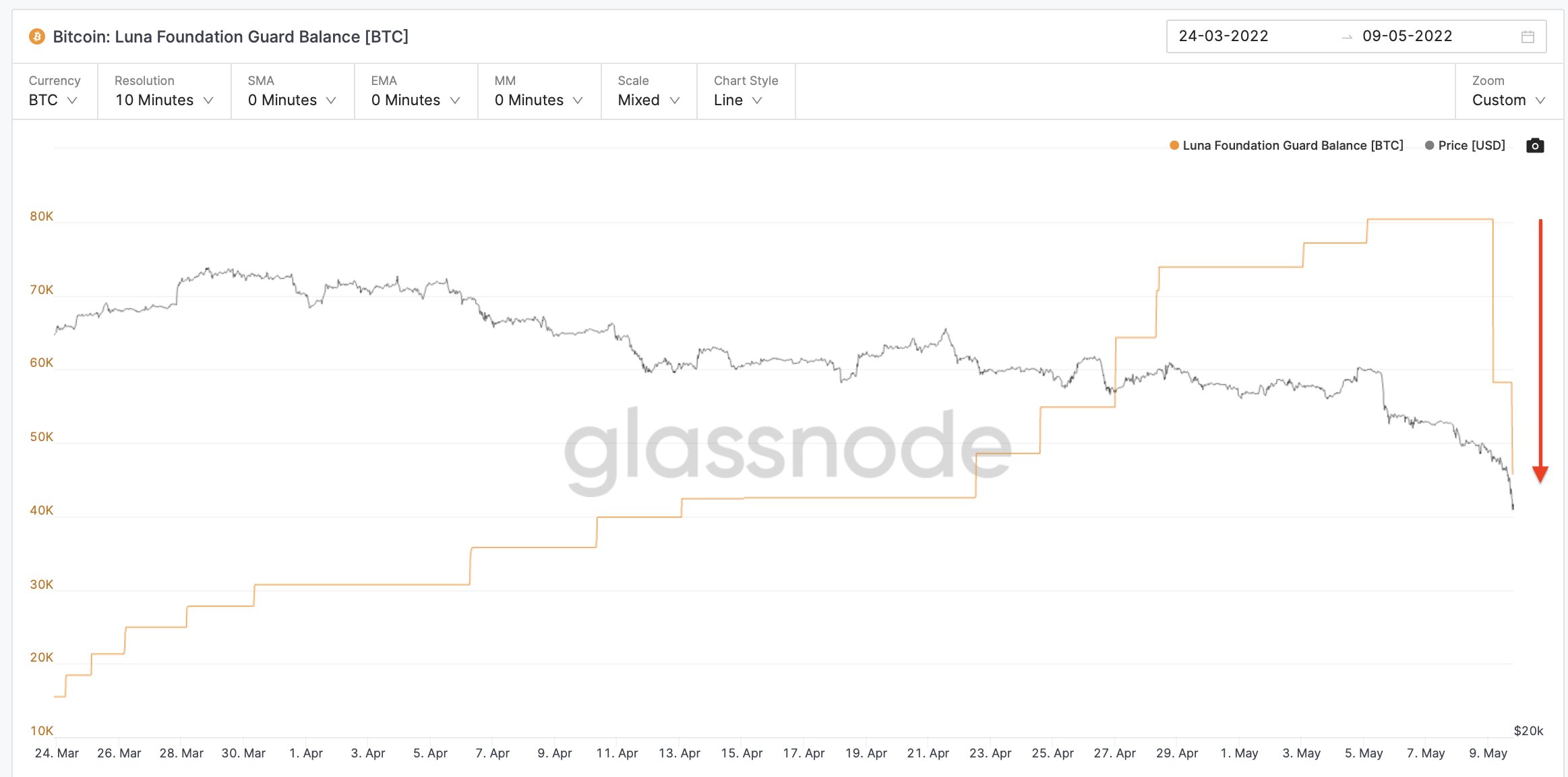 Tron’un stablecoini piyasaya sürülmesinin ardından büyük darbeler yiyen LUNA, 1 dolara endeksli stablecoinin değerini korumak için BTC satışlarına başladı.