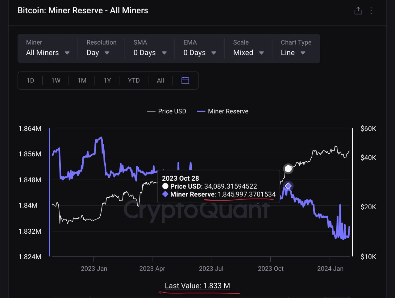 - 28 Kasım 2023’te madencilerin toplam Bitcoin rezervi 1.845.997 BTC idi.