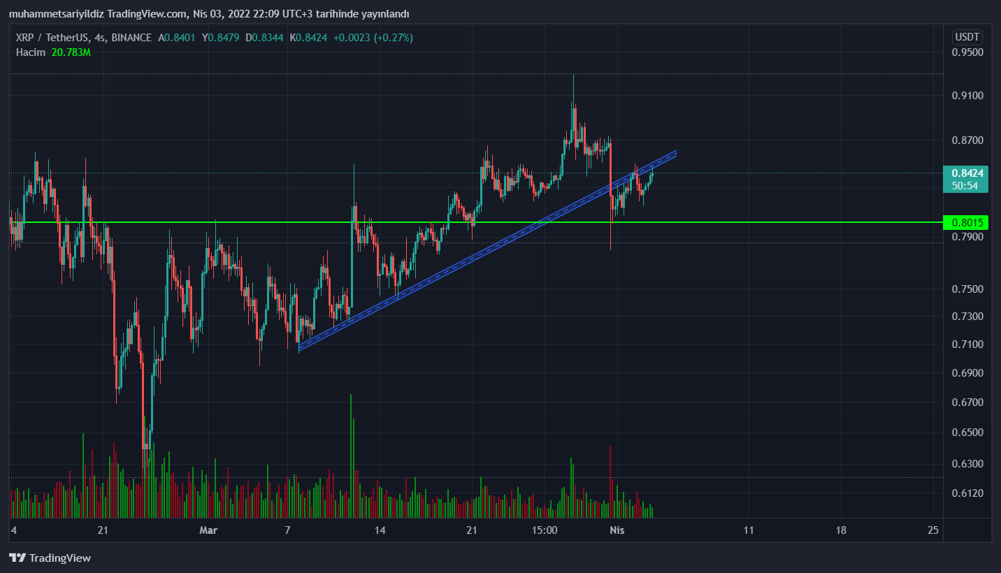 Yayın saati itibariyle 0.84 dolar seviyelerinde bulunan Ripple, halen yükselen trendinin üzerine çıkamamış durumda.