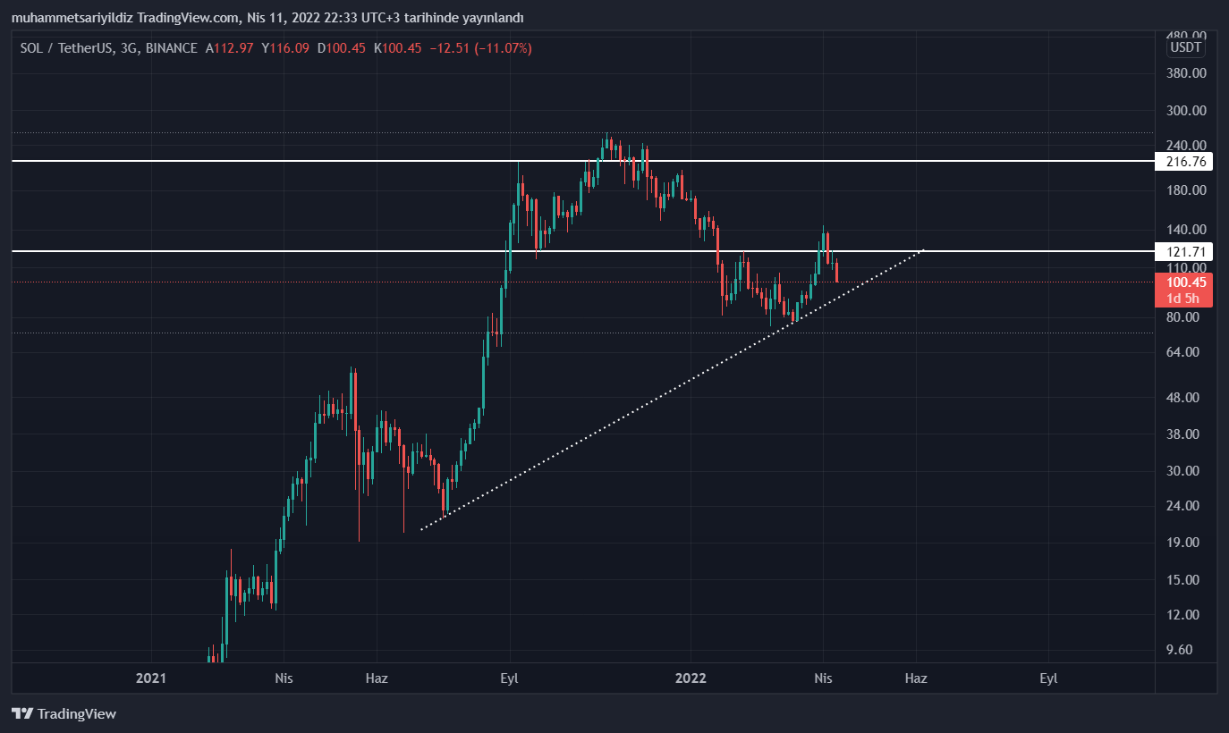 Haberimizin yazıldığı esnada 101 dolar seviyelerinde bulunan Solana, kritik bir destek olan 120 doları kaybetmiş durumda.