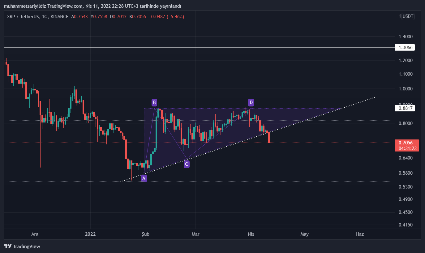 Haberimizin yazıldığı esnada 0.70 dolar seviyelerinde bulunan XRP, bugün özelinde yükselen üçgen formasyonunu aşağı yönlü kırdı.