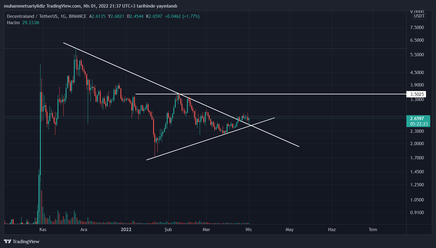 Yayın saati itibariyle 2.66 dolar seviyelerinde bulunan MANA, son 2 haftada sadece %13’lük bir yükseliş gerçekleştirdi.