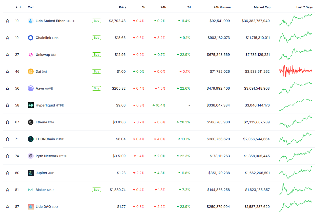 DeFi altcoin’lerini merak eden okurlarımız, aşağıdaki piyasa değerine göre en büyük DeFi altcoin’leri listesini inceleyebilirler: