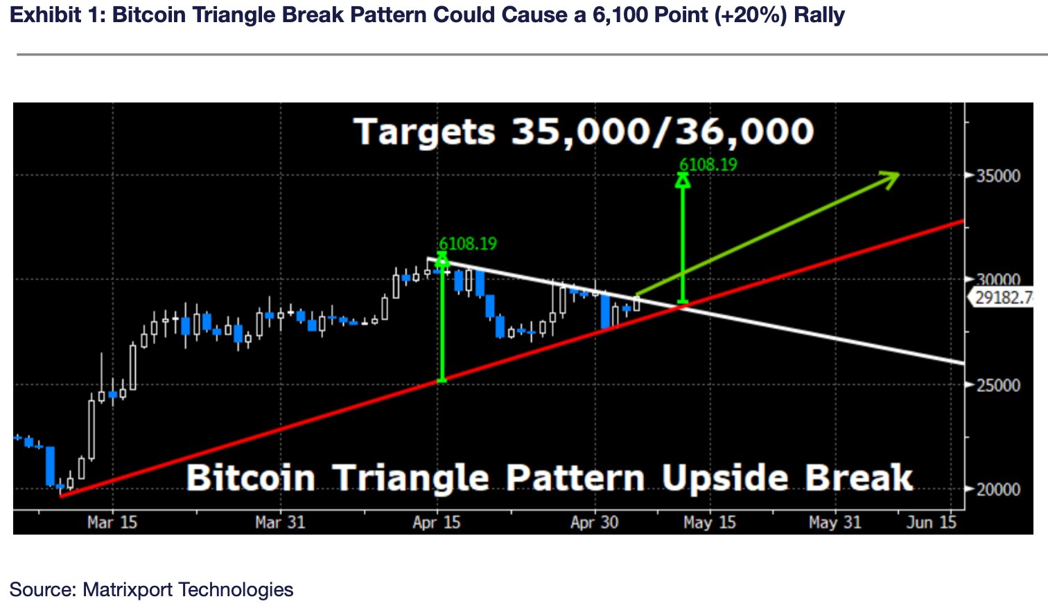 Kripto finansal hizmet platformu Matrixport’tan alınan verilere göre Bitcoin‘de (BTC) son üç haftadır oluşan daralan takoz yukarı yönde kırılmak üzere. Böyle bir kırılım, takoz formasyonu doğrultusunda ciddi sıçramaların yaşanmasını sağlayabilir.