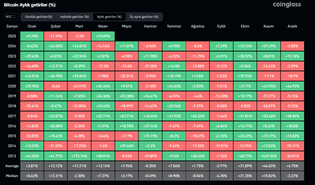 Yüzdesel anlamda bugüne kadar mayıs aylarında ortalama %8’lik bir yükseliş yaşamış olan BTC, ABD’den gümrük savaşına ilişkin radikal adımlar gelmediği sürece bu mayıs ayı özelinde de yukarı yönlü hareketler sergileyebilir gibi duruyor.