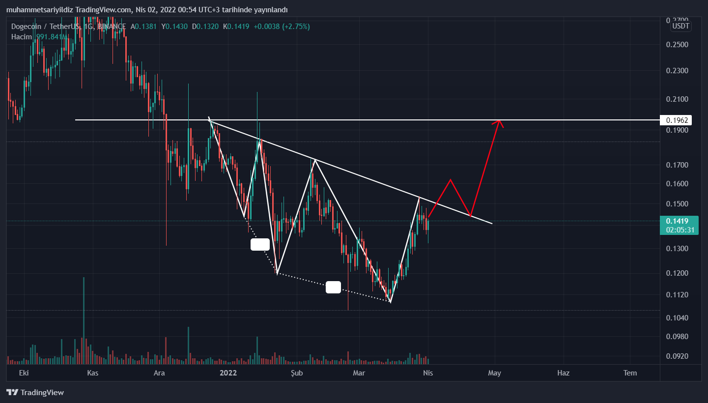 İlerleyen günlerde 0.1500 doların kırılmasıyla birlikte yükselişe başlayacak olan DOGE, kısa sürede 0.2000 dolar seviyelerine ulaşabilir gibi gözüküyor.