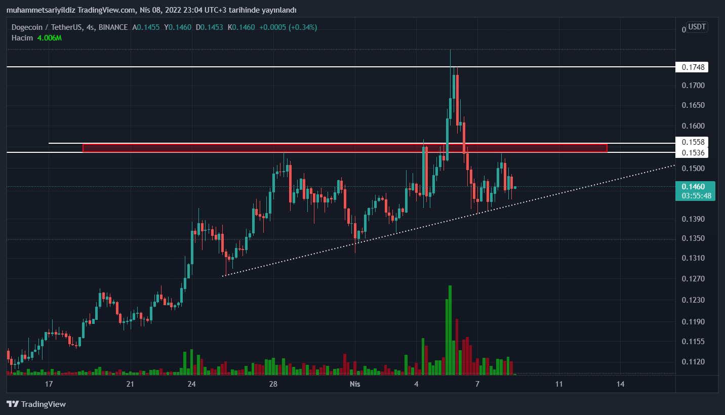 İlerleyen süreçte yükselen trendinden destek alarak yükselişe devam etmesi beklenen DOGE, 0.1550 dolar direncini kırmasıyla birlikte ise 0.1748 dolar seviyelerine kadar yükselebilir.