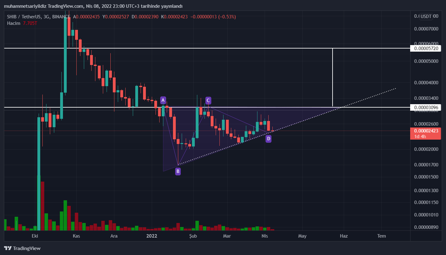 An itibariyle bir boğa formasyonu olan yükselen üçgen formasyonu oluşturan SHIB, halen çok büyük umut vermemekte.