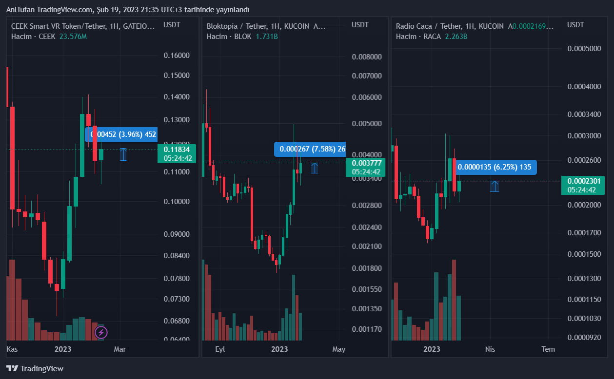 Türk kripto para yatırımcılarının yakından takip ettiği metaverse altcoin‘leri olan CEEK, BLOK ve RACA‘ya baktığımızda ise bu hafta itibariyle beklenen performansı sergileyemedikleri gözlenmekte.