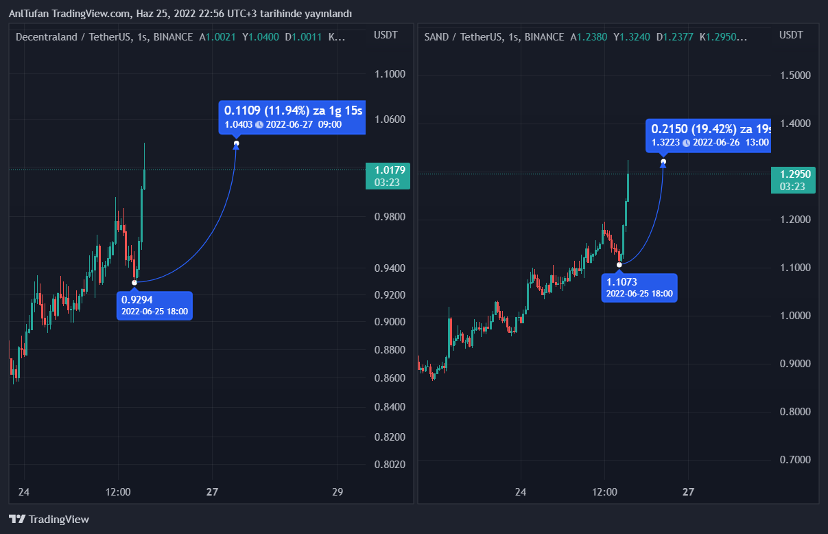Bu iddiaların ortaya atılması sonucunda ise metaverse coinleri arasında lider olan MANA ve SAND sert bir şekilde değer kazanmaya başladı.