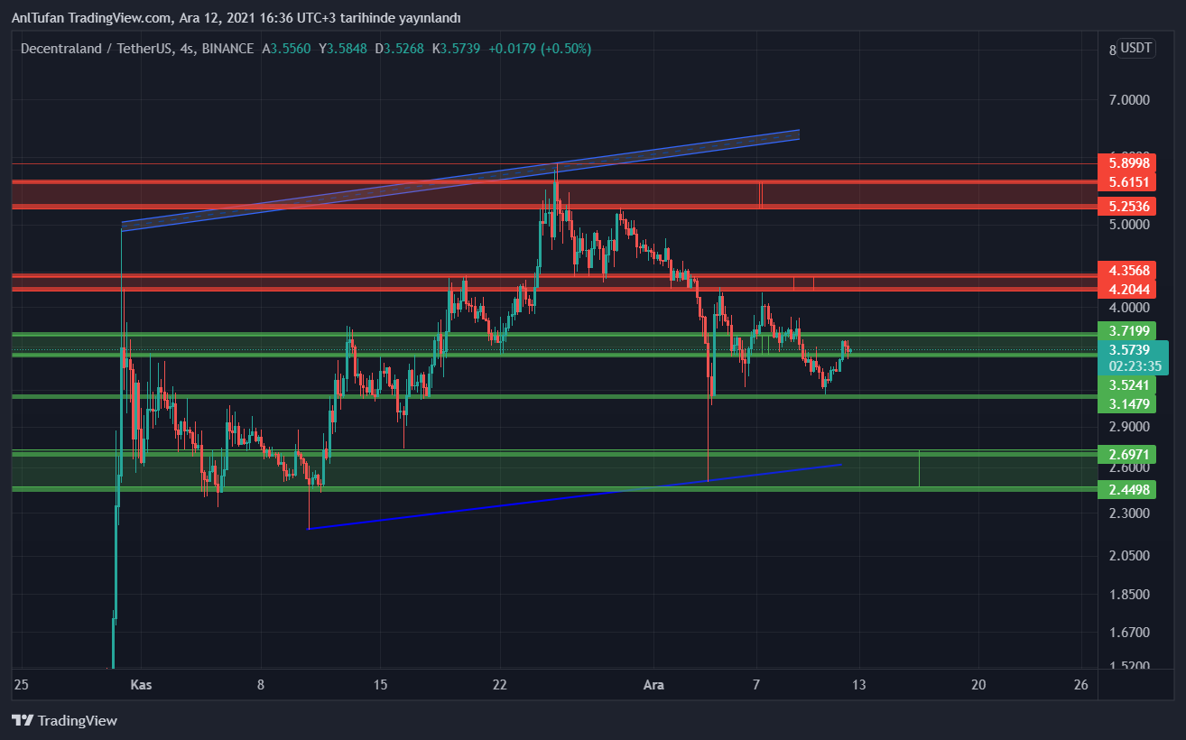 Yayın saati itibariyle 3.58 dolar seviyelerinde bulunan MANA, kritik destek seviyesinin içine girmiş durumda. 3.52 – 3.71 dolar destek seviyelerinden tekrardan yukarıya doğru bir hareket yapması halinde ilk direnç seviyesi olarak 4.20 dolar seviyesi olarak göze çarpmakta.