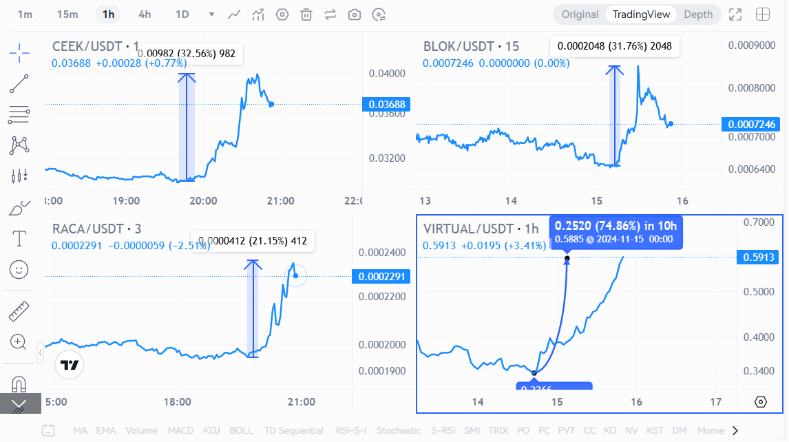 Bugün Türk kripto para yatırımcılarının yakından takip ettiği Bloktopia (BLOK) %31, Ceek Vr (CEEK) %32 ve Raca (RACA) ise %21’lik bir yükseliş yaşadı. Ayrıca metaverse kategorisinde bir altcoin olan VIRTUAL‘da %74’lük bir sıçrama gerçekleştirdi.