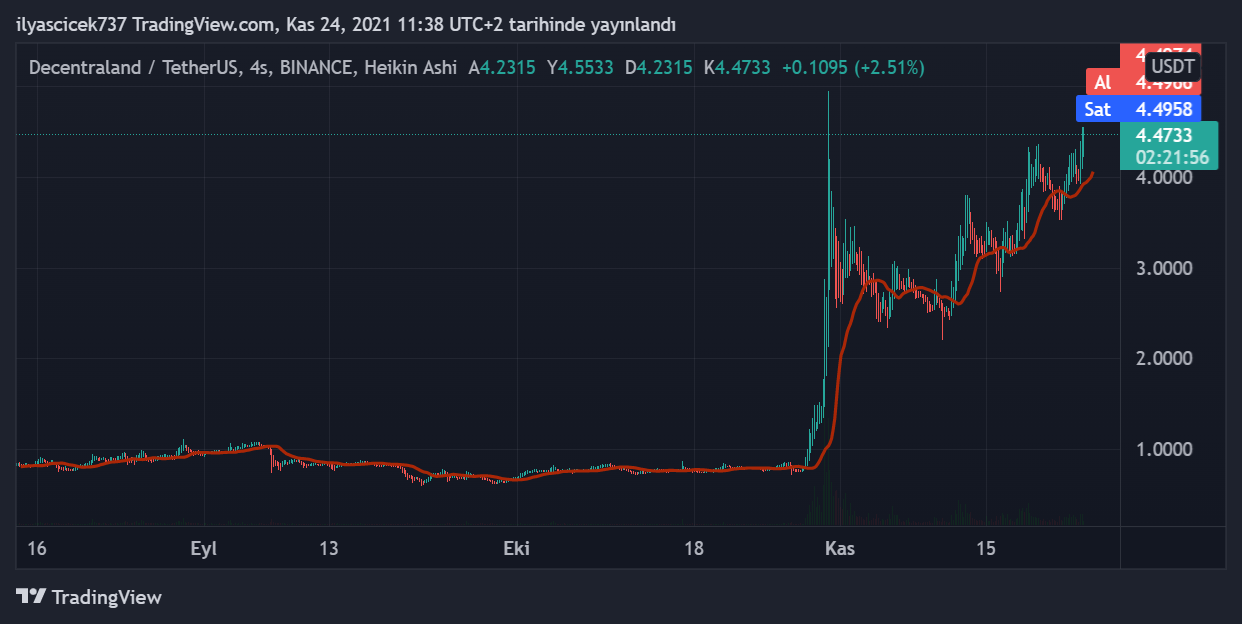 Yükselen yıldızlar arasında bir diğer metaverse kripto para birimi Decentraland (MANA) yer alıyor. Sosyal medya devi Facebook’un isim değişikliğine giderek adını META olarak değiştirmesinin ardından, MANA saatler içerisinde %300’ün üzerinde bir artış yaşamıştı.