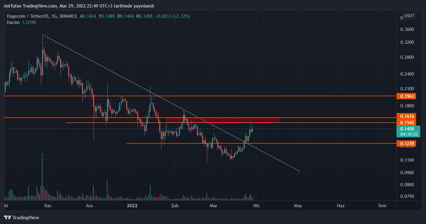 0.1542 – 0.1620 dolar direncinden reddedilmesi durumunda ise DOGE‘nin 0.1278 dolar desteğine bir düşüş yaşadığını seyredebiliriz.