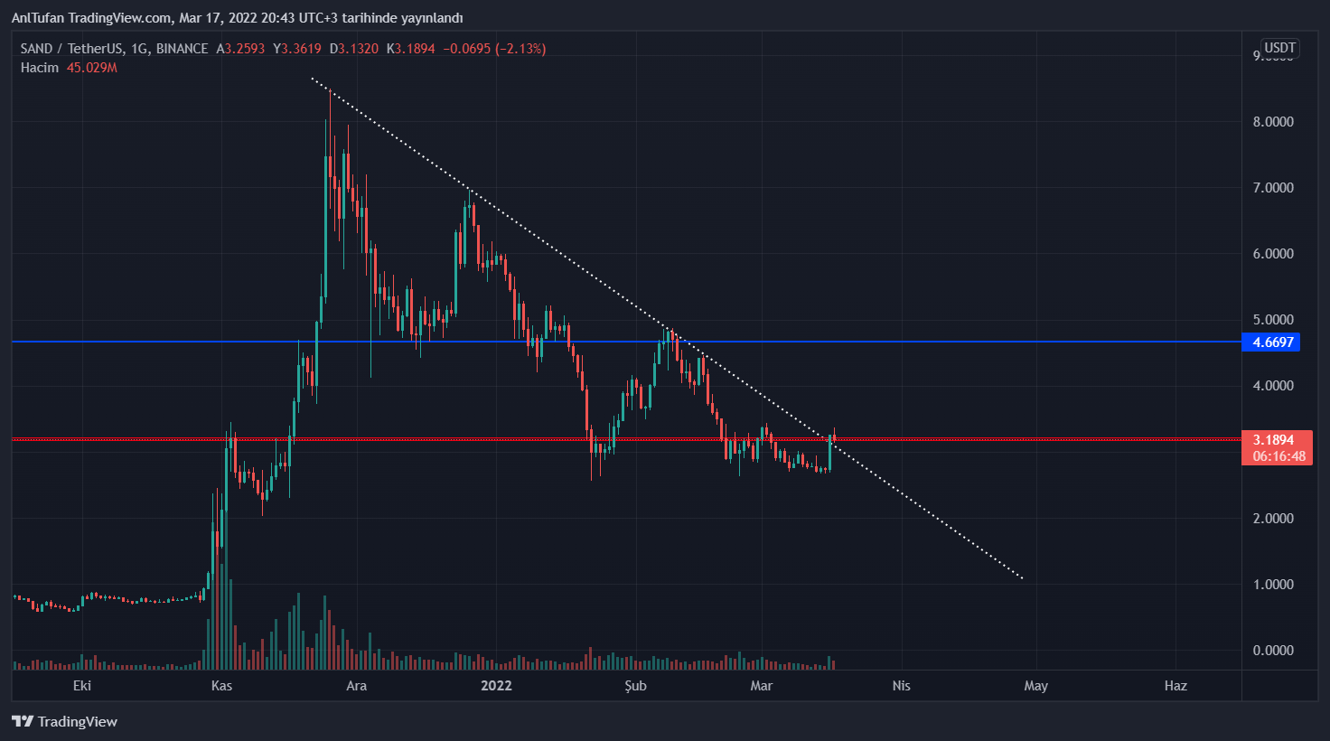 Haberimizin yazıldığı esnada 3.19 dolar seviyelerinde bulunan SAND, dün itibariyle düşen trendini kırmayı başardı.