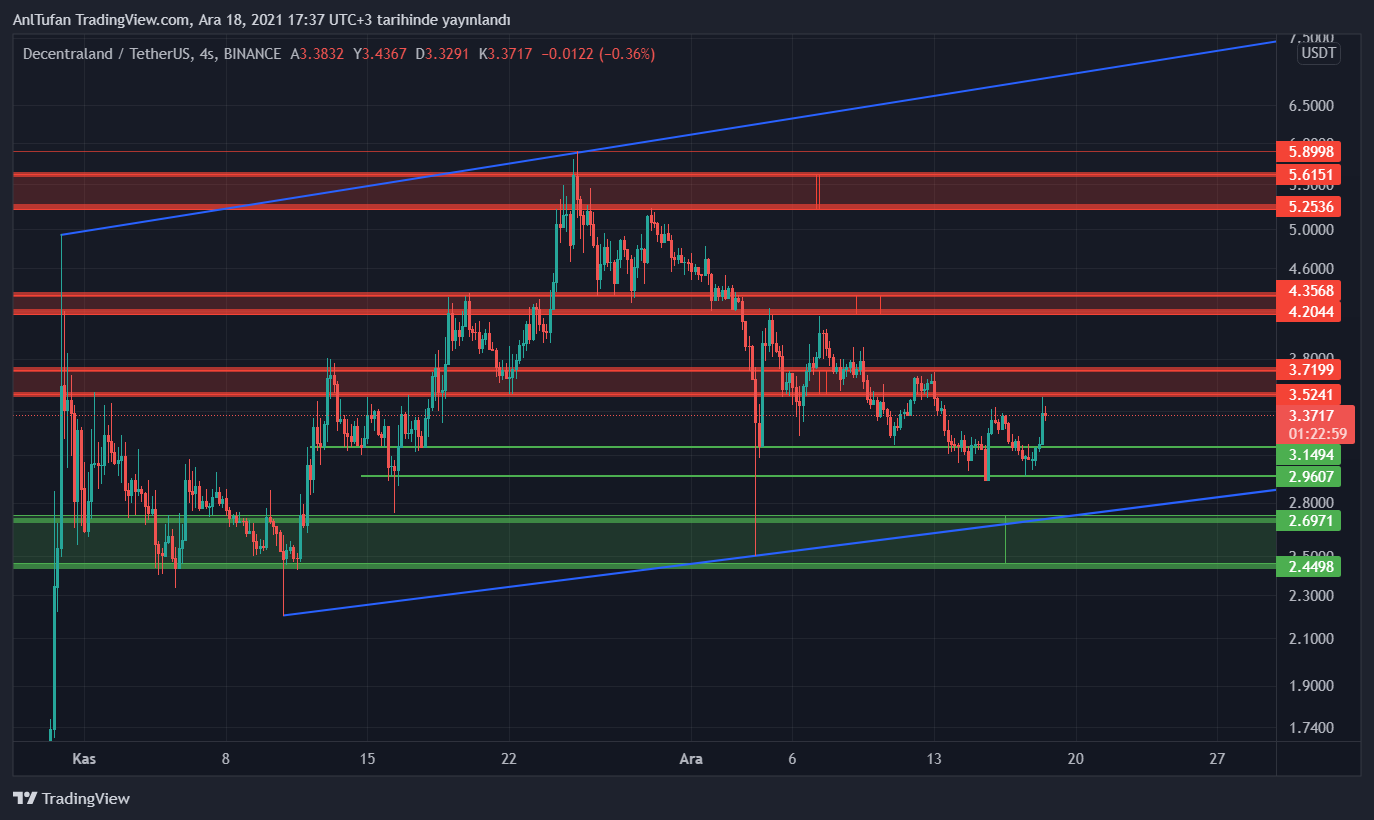 3.52 dolar direncini kırması halinde yükselişin devam edeceği MANA’da, 3.72 dolar seviyesi kritik bir direnç olarak görülmekte. Bu seviyenin kırılmasının ardından yükselişlerine devam edebilecek MANA’nın önü açık gibi gözüküyor.