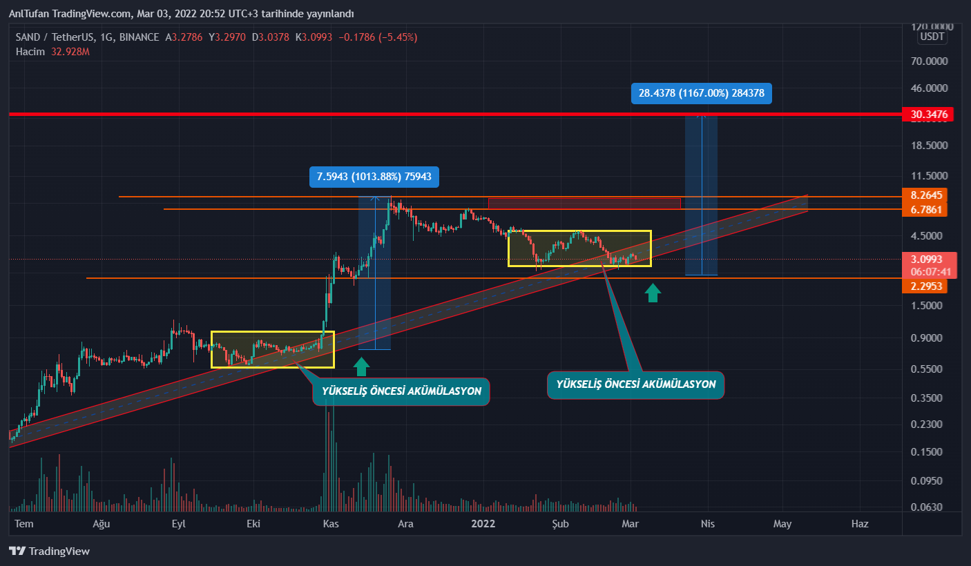 Tekrardan ilk hareket gibi süper yükseliş hareketinin başlaması durumunda ise The SandBox’ın 30 dolar seviyesini görmek çok zor gözükmemekte.