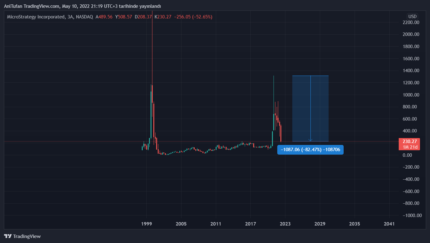 An itibariyle 230 dolar seviyelerinde bulunan MicroStrategy hisseleri, ATH seviyesinden %82 oranında düşüş yaşadığı görülüyor.