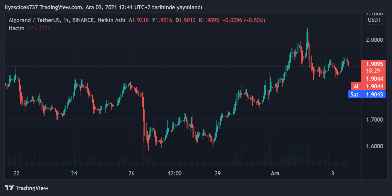 Algorand’ın yerel tokeni ALGO, yayın saati itibari ile %2 artış ile 1.82 dolar seviyesinde el değiştiriyor.
