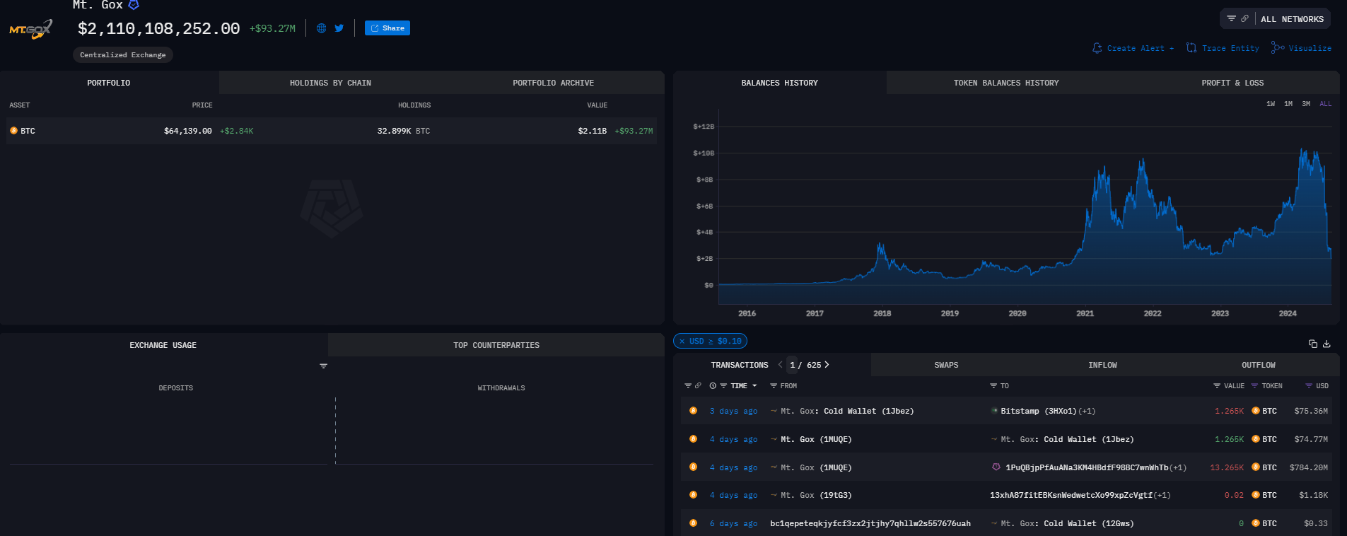 Mt. Gox cüzdanı, 2021’in başında 141.69 bin adet BTC tutuyordu. Mt.Gox yapılan ödemelerin ardından şu anda 32.9 bin adet BTC (2.11 milyar dolar değerinde) tutuyor.