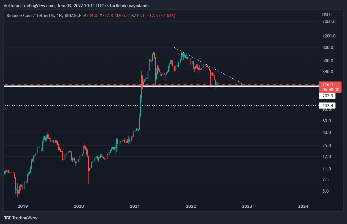 Bitcoin‘in düşüşlerinde oldukça sağlam durmayı başarmış olan Binance Coin, 200 dolar desteğinin üzerinde tutunmaya çalışıyor.