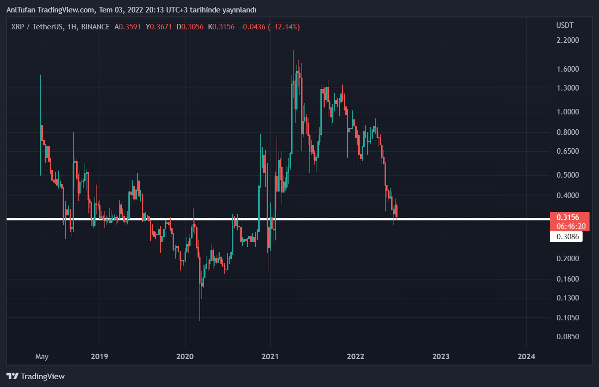 SEC davası nedeniyle birçok kripto para biriminden çok daha fazla düşüş yaşayan XRP, haberimizin yazıldığı esnada 0.31 dolar seviyelerinden işlem görüyor.