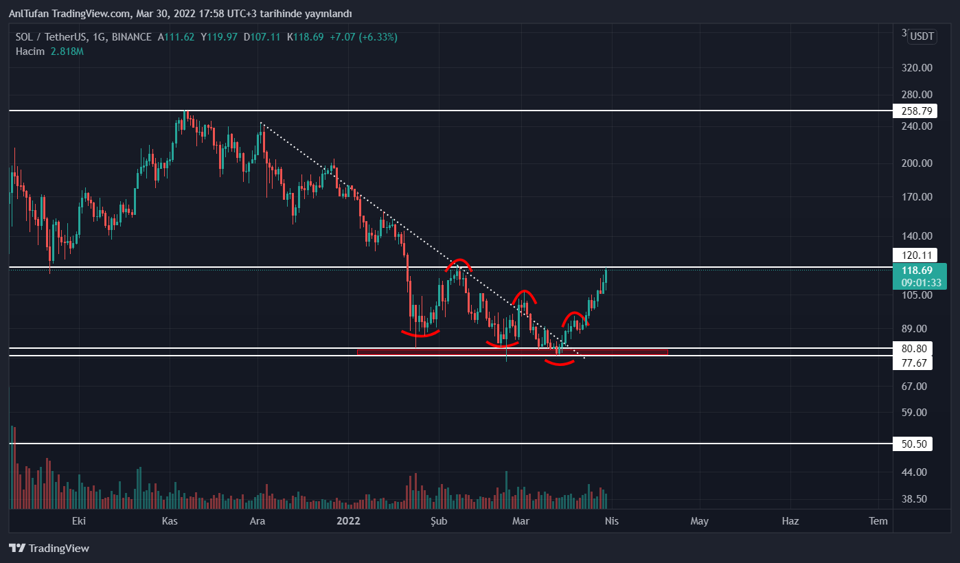 İlerleyen saatlerde 120 dolar direncini kırması halinde 150 dolar direncini hedeflemesi beklenen SOL, 120 dolar direncinden reddedilmesi halinde 100 dolar seviyelerine kadar değer kaybı yaşayabilir.