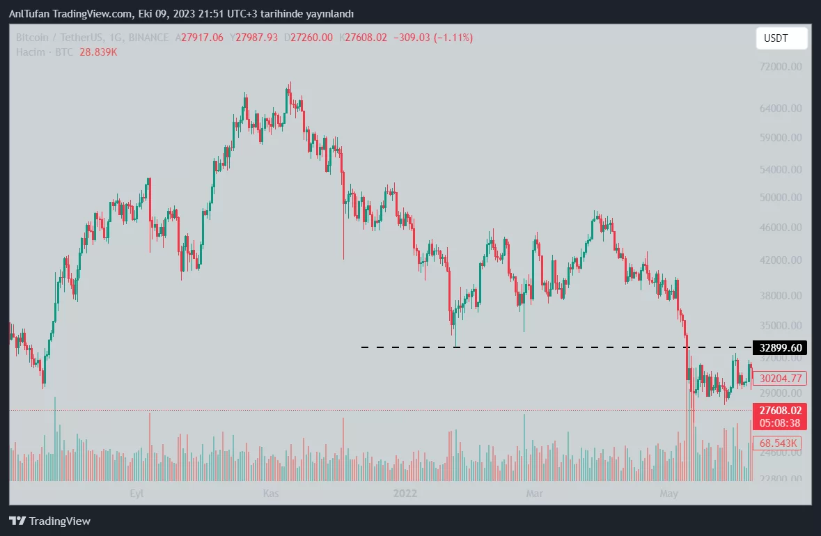 2022 yılının ilk aylarında Rusya – Ukrayna savaşı başlamıştı. O dönem 40 bin dolar seviyelerinde işlem gören BTC, savaş haberleri sonrasında ani bir şekilde 33 bin dolara kadar gerilemişti.