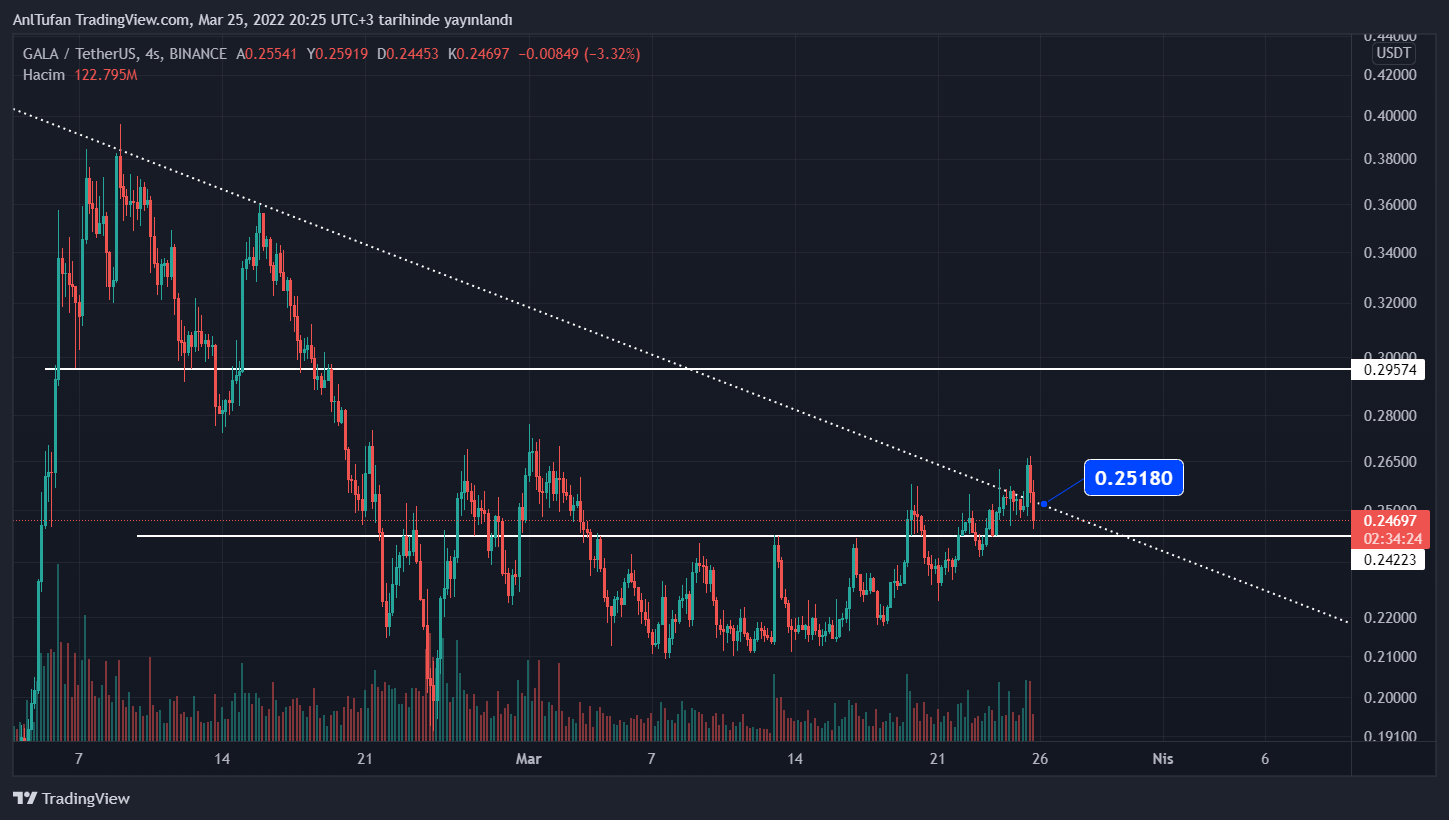 Yayın saati itibariyle 0.2458 dolar seviyelerinde bulunan GALA, düşen trendini kırmasıyla birlikte değer kazanmıştı.
