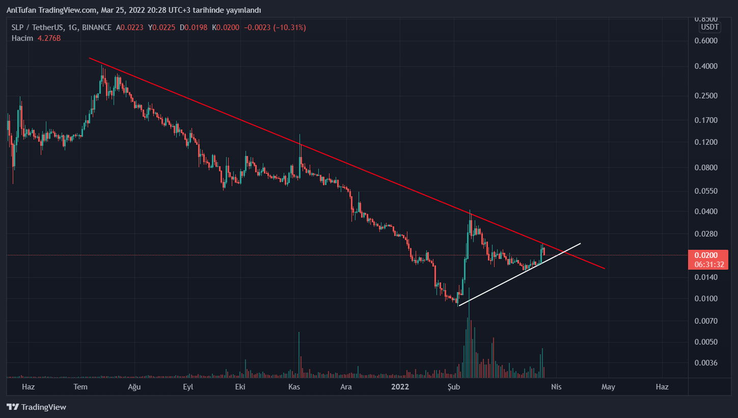 Bugün itibariyle %10’luk bir düşüş yaşayan SLP, 0.020 dolar seviyelerinde tutunmaya çalışıyor gibi gözükmekte.