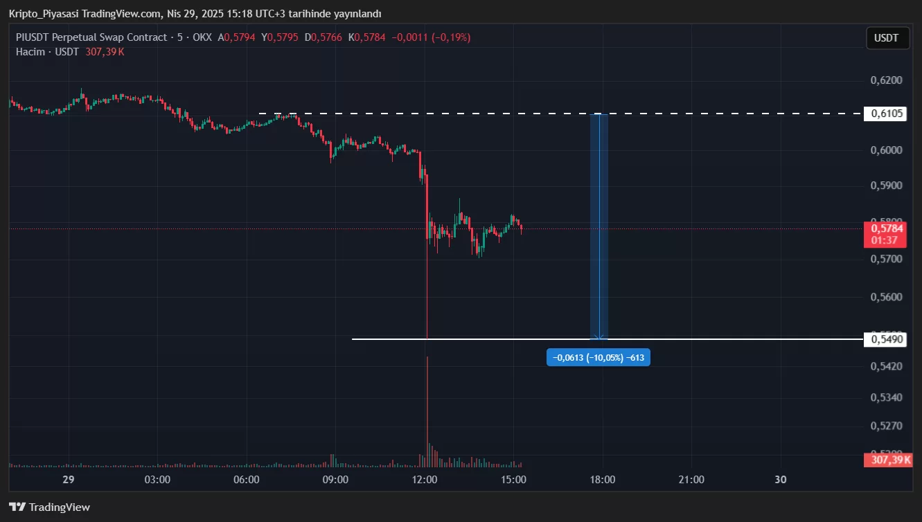 0.610 dolardan 0.549 dolara kadar gerileyen PI, dipten tepki adı ve an itibariyle 0.578 dolardan işlem görüyor. Yine de PI fiyatındaki satış baskısı halen son bulmadı.