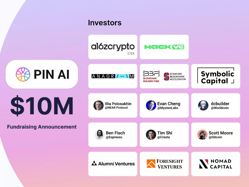 Öncü bir yapay zeka altyapı şirketi olan PIN AI , dünyanın ilk açık kaynaklı Kişisel Zeka Ağı’nı (PIN) geliştirmek için ön tohum finansmanında 10 milyon dolar sağladığını duyurdu. A16z CSX, Hack VC ve Blockchain Builders Fund (Stanford Blockchain Accelerator), Illia Polosukhin (Transformer makalesinin yazarı; NEAR Protocol’ün kurucusu), Anagram/Lily Liu (SOL Foundation Başkanı), Symbolic Capital (Polygon’un kurucu ortağı), Evan Cheng (Mysten Labs/SUI CEO’su), dcbuilder (Worldcoin Foundation), Foresight Ventures (Block’un ana şirketi), Nomad Capital, Tim Shi (Cresta’nın kurucu ortağı), Ben Fisch (Espresso CEO’su), Scott Moore (Gitcoin’in kurucu ortağı), Alumni Ventures ve Dispersion Capital gibi önemli yatırımcılar projeye destek verdi.