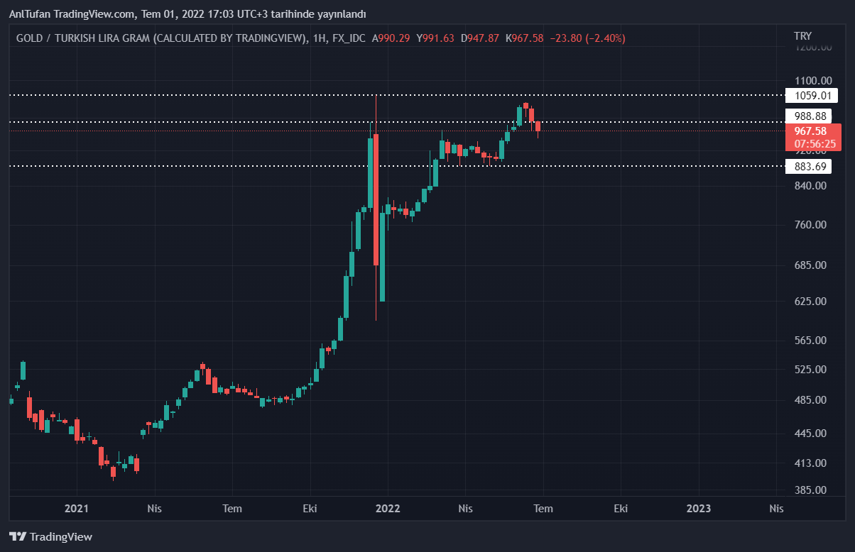 Kısa vadede 880 Türk lirasına kadar sarkma ihtimali yüksek gibi gözüken gram altın, 1000 Türk lirasını aşması halinde ise tekrardan 1050 Türk lirası zirvesini zorlayabilir.