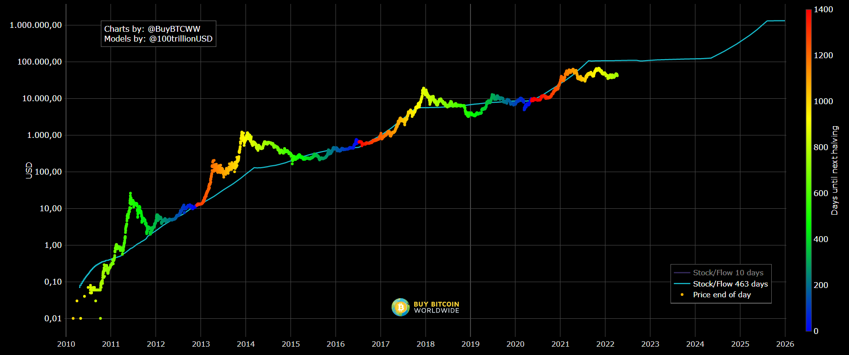 SF2 modeline göre BTC‘nin 2021 yılının sonuna kadar 100.000 dolara ulaşması gerekiyordu. Lider kripto para her ne kadar bu seviyeye ulaşamasa da, Plan B bu hareketleri alım fırsatı olarak yorumluyor.