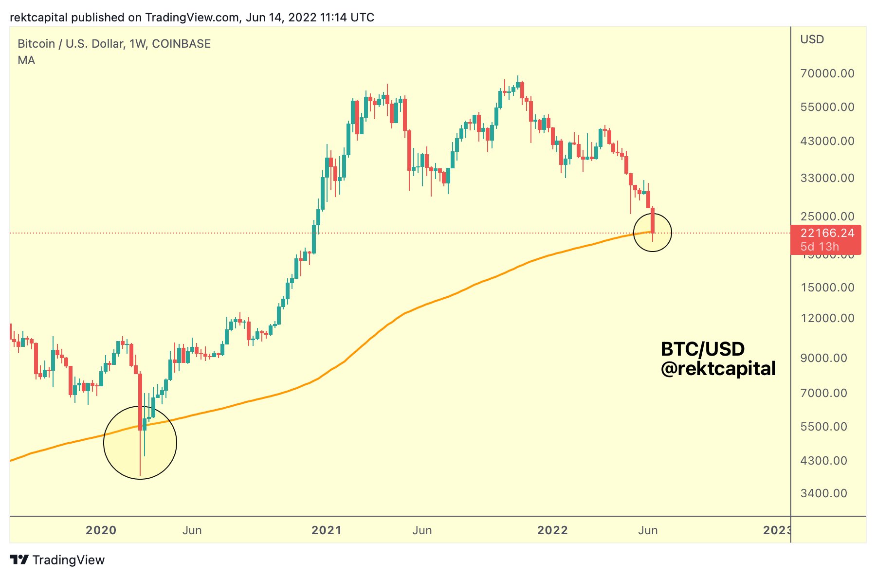 Anonim analist, 316 bin Twitter takipçisine, Bitcoin‘in Mart 2020’den bu yana ilk kez 200 haftalık hareketli ortalamasının altına sarktığını söyledi.