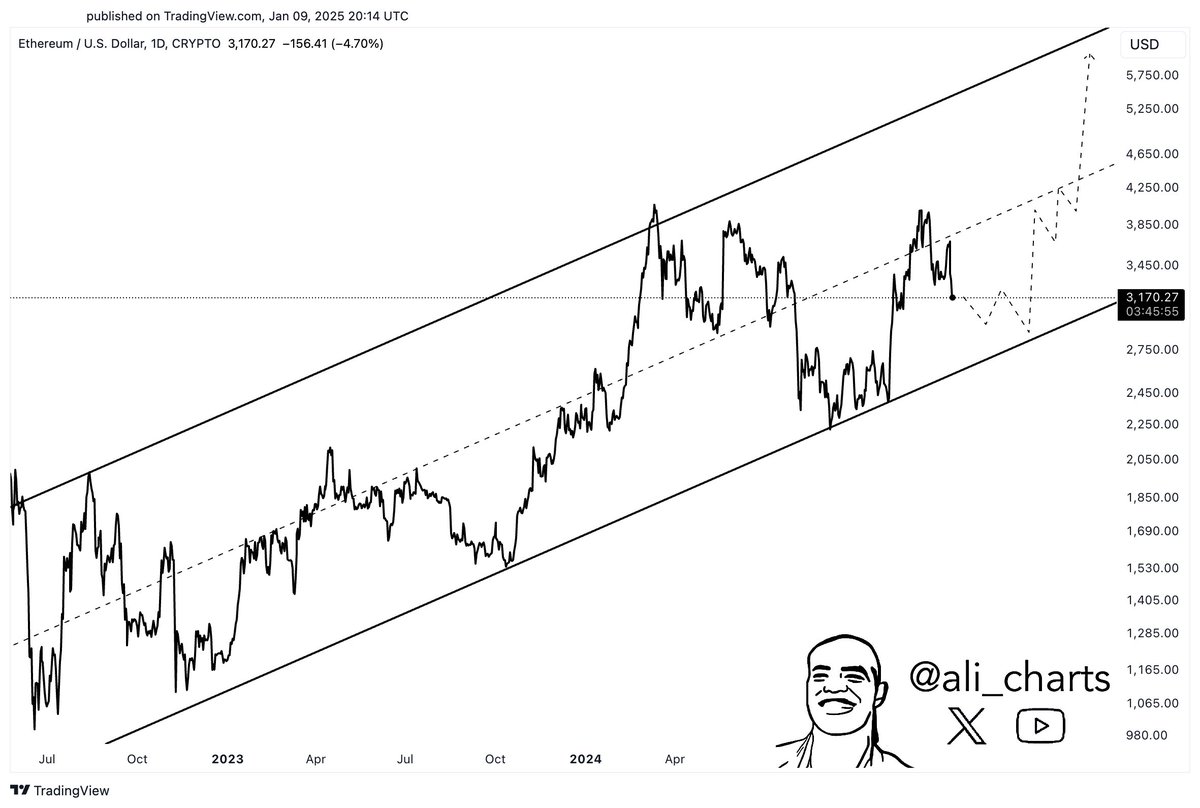 ETH’nin büyük bir yükselen paralel kanalın içerisinde yer aldığını düşünen Martinez, son paylaştığı analizde şu sözlere yer verdi: