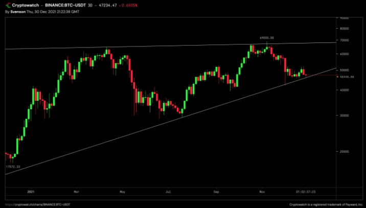 Svenson buna ek olarak Bitcoin teknik analizine bakıldığında da, aslında BTC’nin dönüş noktasına geldiğini vurguladı. Analiste göre buradaki kanalın destek noktasından başlayacak yükseliş bizi tekrar 70.000 dolar seviyesine çıkartabilir.