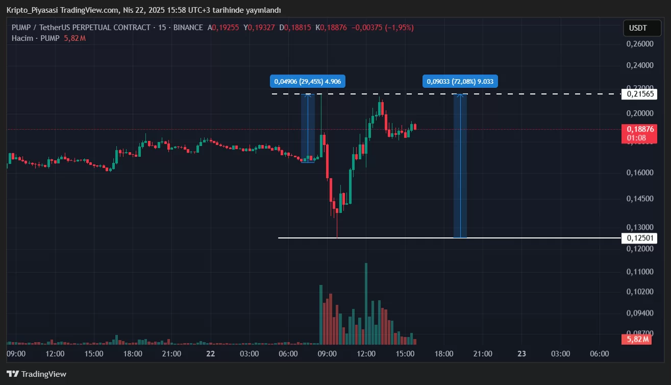 Bugün itibariyle ise Bithumb borsası, PUMP isimli altcoin’i listeleme kararı aldı. Bu listeleme duyurusu sonrasında PUMP fiyatında önce %30’luk ani bir yükseliş, sonrasında ise büyük bir çöküş yaşadı. PUMP dakikaların ilerlemesiyle %70’lik bir artış daha yaşayarak bu düşüşü de telafi etti.