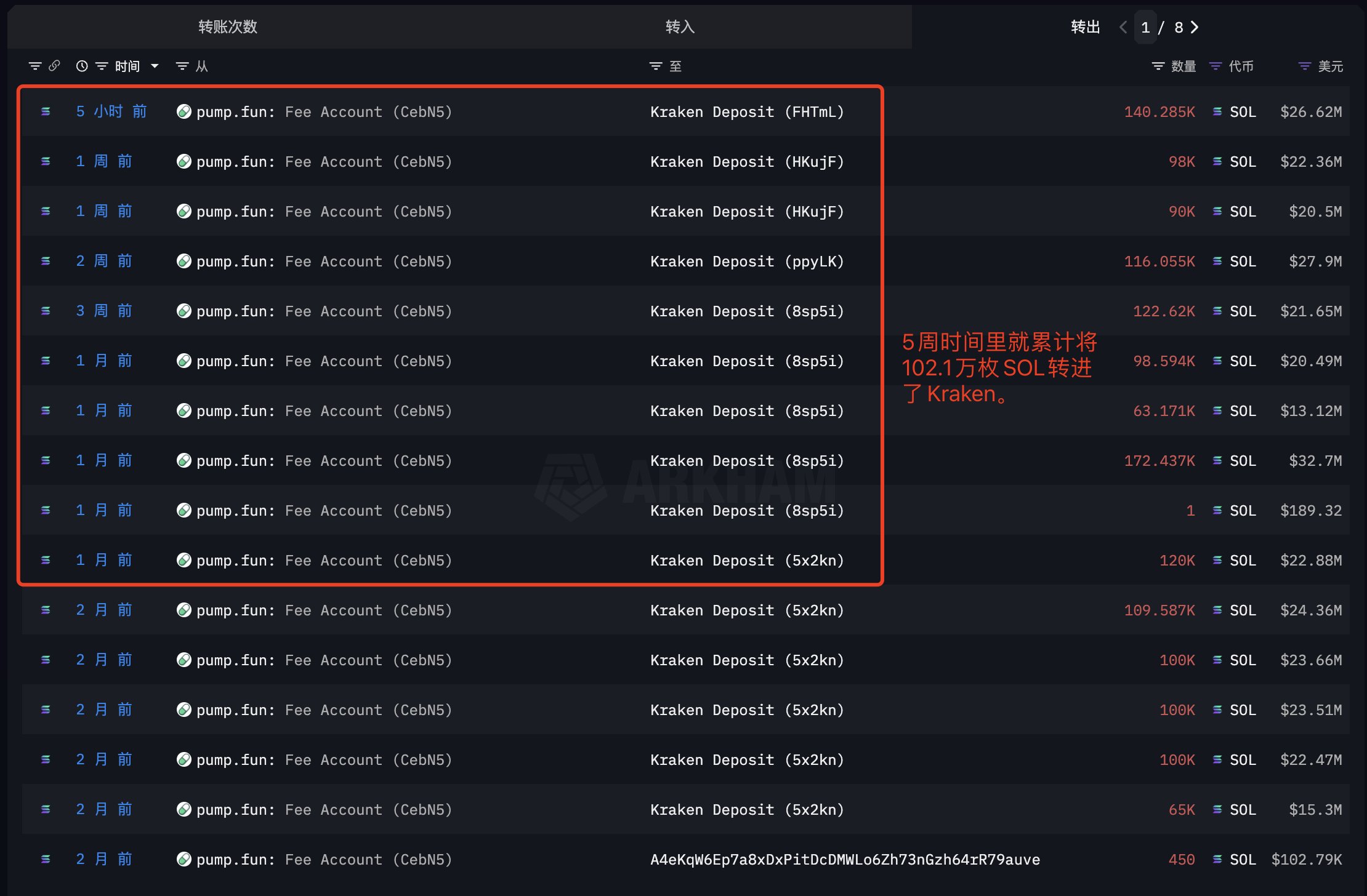 “Pump-Fun 5 saat önce satış yapmak için yine Kraken’a toplamda 140.000 adet SOL (26,62 milyon dolar değerinde) transfer etti.